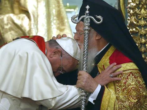 Nový, nejoriginálnější aspekt setkání mezi ekumenickým patriarchou z Konstantinopole jistě nebyla Františkova poklona před Bartolomějem, s prosbou o požehnání. Papežská poklona, navíc podivná, netvoří ještě žádnou jednotu, ani mezi katolickou a pravoslavnou církví, i když jsou si nejblíže.
